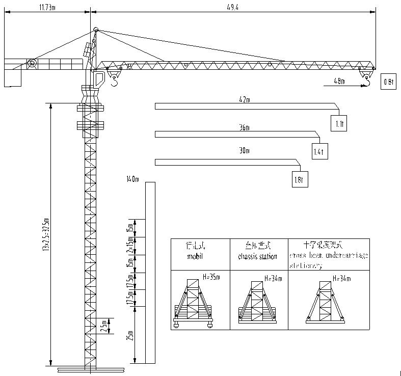 鸿达塔吊HPA80(6010)平头塔机特点 1、起重臂采用高强钢(无缝管BQ490E);采用大...