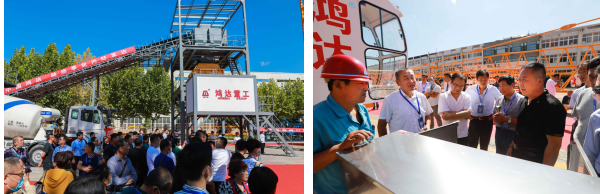 上午,参会嘉宾在鸿达重工样品展示区进行现场观摩,党委书记王纪武同志致欢迎词、,付剑雄总工程师为嘉宾现场讲解了QTP250(7025)塔机的优越性,销售办周龙同志对今年研发的几个新机型——QTZ160(6517)塔机、QTP250(7025)片式标准节塔机┃、QTZ63(5013)塔机和SC200/200P升降机做了现场视频介绍┃。